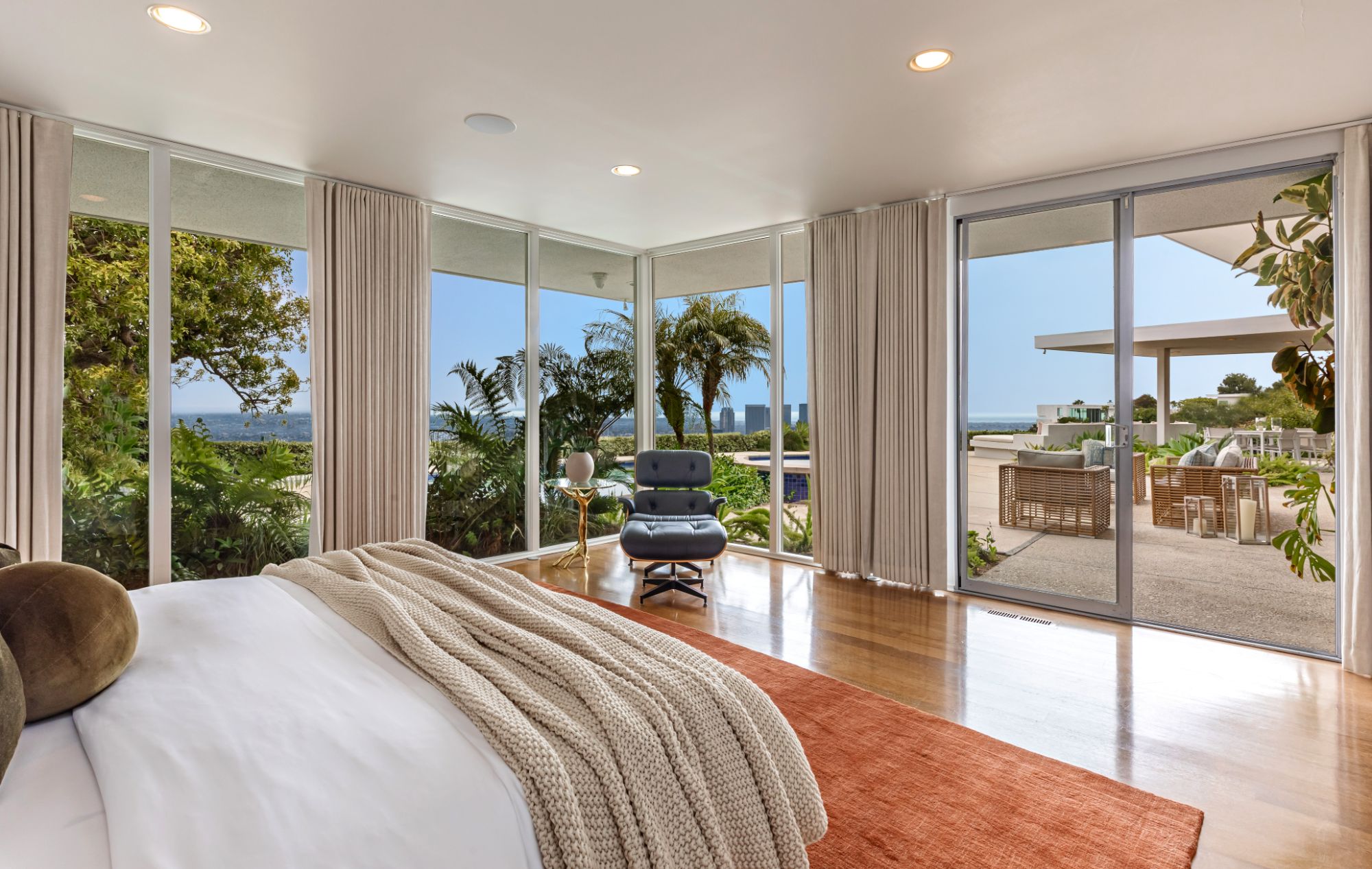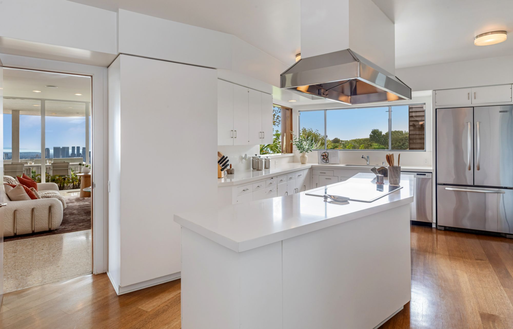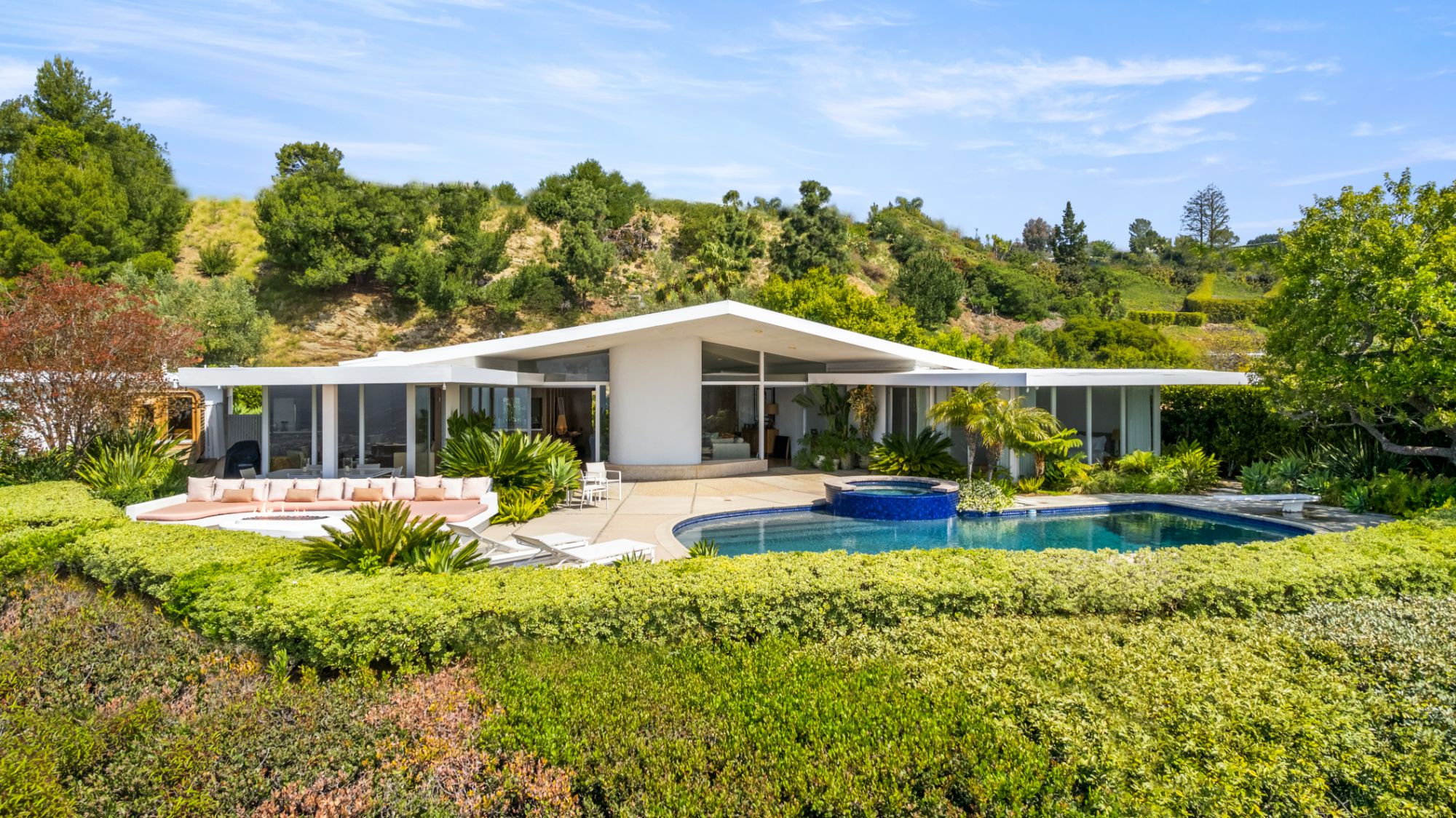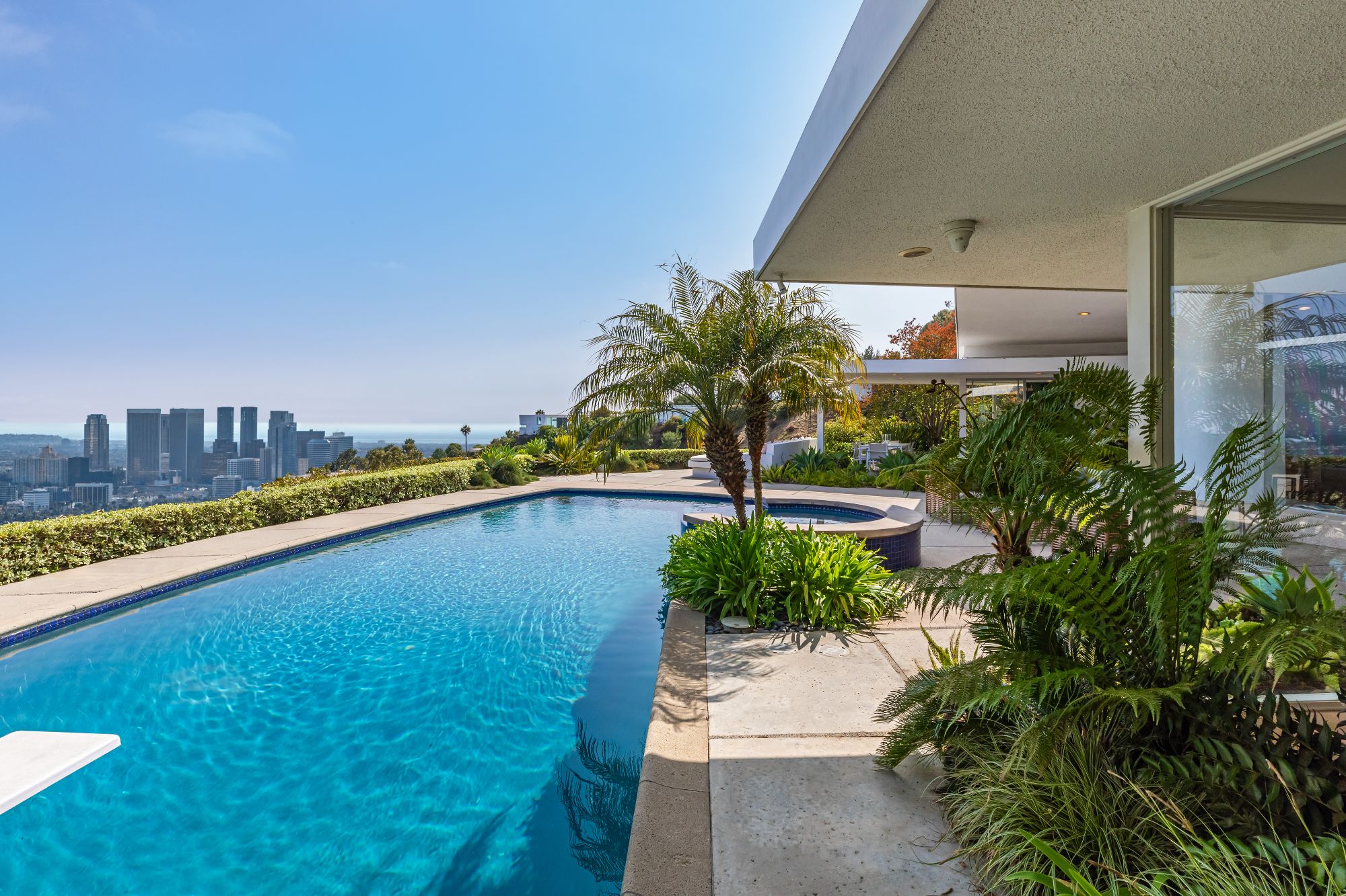 Restored Trousdale mid-century masterpiece hovering on a promontory with massive unobstructed city to ocean views. Soaring A-frame high ceilings, wonderful open floor plan with great proportions, and one of the best views in Trousdale. On one of the most exclusive and quiet streets, Haynes. Secured, private, and a very peaceful setting. Trousdale has a rare few gems, and an architectural marvel like this comes up once in a lifetime. By architect David Hyun, who designed the famous Japanese Village Plaza in Little Tokyo and worked with Schindler and Neutra. Here is your chance to own a piece of history in the number one location in all of Los Angeles. Opportunities like this very rarely come available.
